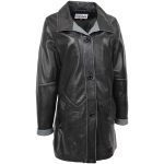 Womens Leather Coat 3/4 Length Classic Style Margaret Black Grey